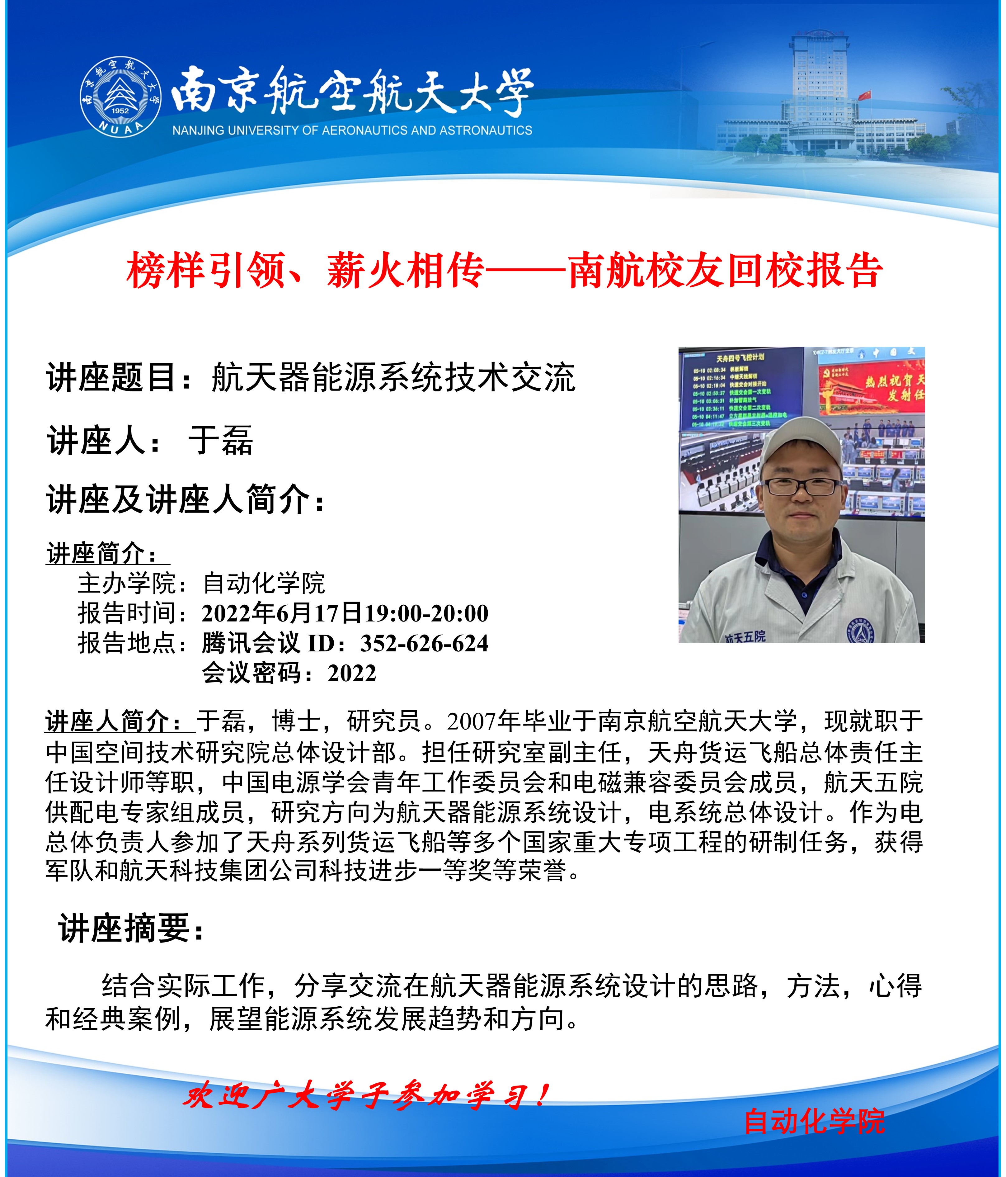 【学术报告】南航校友回校报告——航天器能源系统技术交流