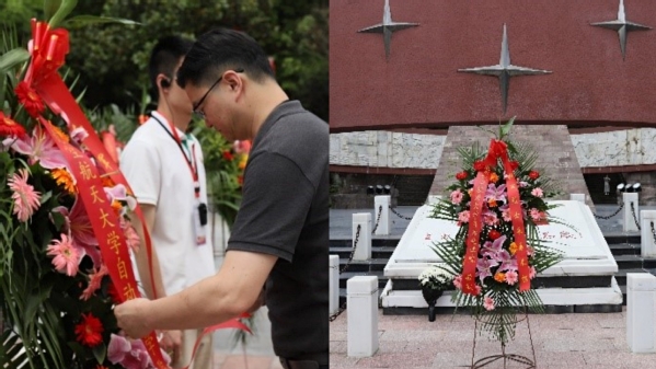 培训班全体学员第三站是来到遵义红军烈士陵园参观学习,红军烈士陵园集中了新中国成立后在遵义各处找到的红军遗骨。在陵园顶端的平台上,首先映入眼帘的是一座气势雄伟的红军烈士纪念碑,上面写着“红军烈士永垂不朽”八个大字,纪念碑的四周还镶嵌着28颗闪亮的星星,它也象征着中国共产党抗战28年的艰辛历程,圆环内壁是汉白玉石浮雕,雕刻着“强渡乌江”、“娄山关大捷”、“四渡赤水”等战争经典图像。betway西汉姆联全体学员向红军烈士纪念碑敬献了花圈,以表敬意。
