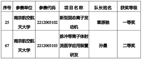 自动化学子在本次竞赛中获得了优异的成绩。由我院吴淑群、朱珉老师指导的作品《新型固态离子发动机》和《脉冲等离子体射流医学应用装置研发》分别荣获全国一等奖和二等奖。《新型固态离子发动机》作品获得了评委的高度认可,充分展示了等离子体技术与航空航天的创新融合。