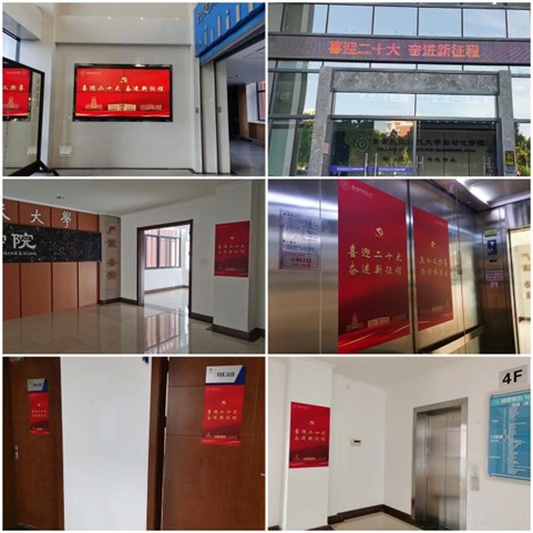 氛围营造方面,betway西汉姆联通过布置“喜迎二十大 奋进新征程”主题海报、电子屏、学院网站等在学院内营造了迎接党的二十大胜利召开的浓厚气氛。