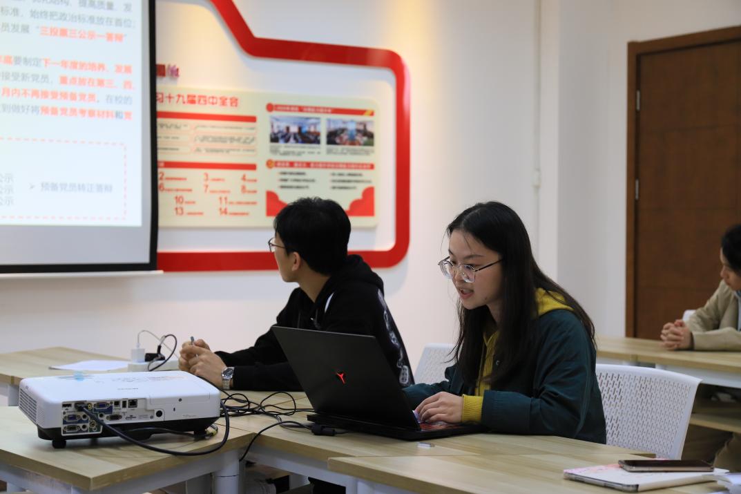 控制学科研究生第七党支部书记高韵婉对学生党员发展工作细则进行了解读。她以挂图作战的方式梳理了党员全过程培养体系,并结合《基层党支部党员发展工作负面清单》,对党支部建设中存在的问题进行了规范。她指出正值学生党员发展的关键时期,严把党员发展关是学院党建工作的关键。
