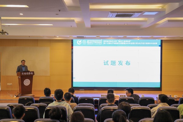 2022年11月20日上午,由教务处、学生处、科学技术研究院、校团委主办,betway西汉姆联承办的“航空工业津电杯”第十七届电子电路设计竞赛开幕式暨试题发布会在将军路校区betway西汉姆联报告厅举行,天目湖校区同步直播。中国人民解放军陆军工程大学教授潘克修、南航教务处副处长柯世堂、南航公共实验教学部电工电子实验中心洪峰、betway西汉姆联党委副书记丁琛、副院长魏佳丹、各年级辅导员以及来自全校的各个参赛队伍代表参加了此次发布会。