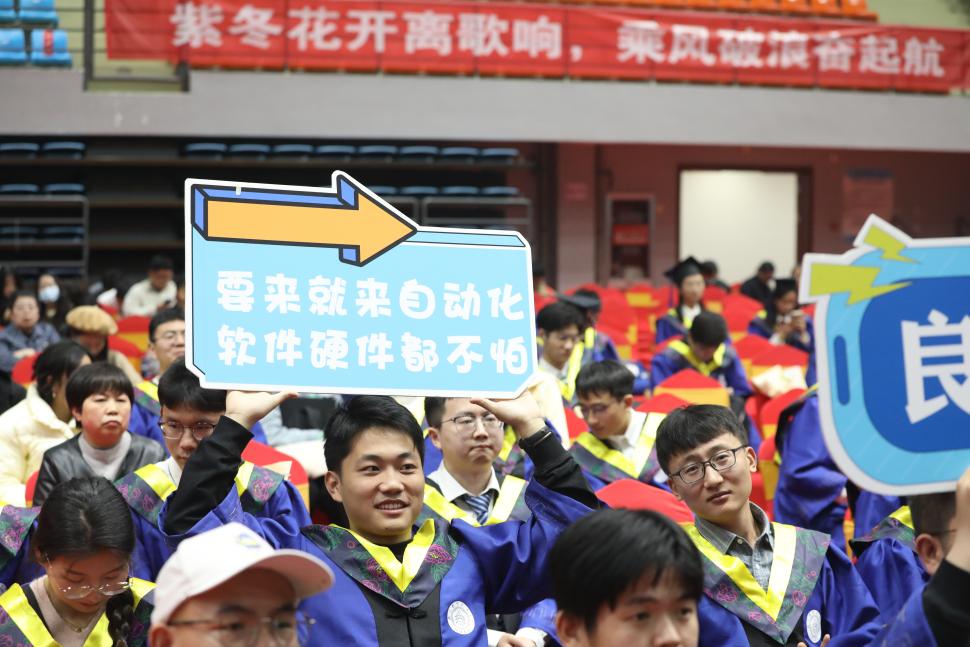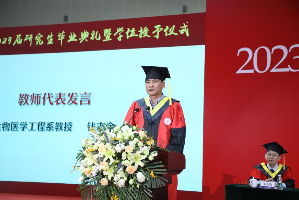 生物医学工程系钱志余教授作为教师代表发言,勉励毕业生常怀包容感恩之心,坚持勤奋学习,努力工作,不畏挑战,勇敢面对困难和未来。控制科学与工程专业瞿潇炜同学代表毕业生分享了自己的成长感悟,表达了对母校、老师和家长辛勤培育的感恩之情,表示将会继续传承报国使命,为中华民族伟大复兴贡献自己的青春、智慧和力量。教师代表、辅导员代表、学生代表为大家带来诗朗诵《感恩相遇,不负韶华》,回顾了永远难忘的师生情、同学情和三年青春年华。