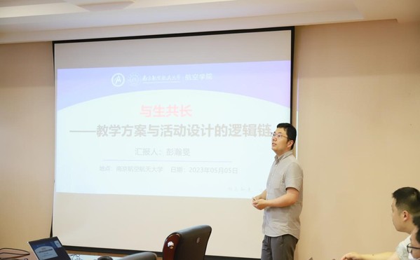 在培训中,彭瀚旻副教授根据“与生共长—教学方案与活动设计的逻辑链”这一主题,围绕“源、因、理、法、效”的创新教学逻辑链展开分享。他重点阐述了教学应当以“金课”、“金师”的标准为要求,以学生学情特点与课程教学痛点为考量,以“以教代学”为理念,以导入科研实例与营造自主学习场域为方法,帮助学生“长知识”以及促使教师“长方法”,使学生和老师之间实现与生共长的关系,从而达到互相促进、共同进步的目的。
