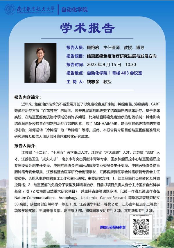 【学术报告】顾艳宏:结直肠癌免疫治疗研究进展与发展方向
