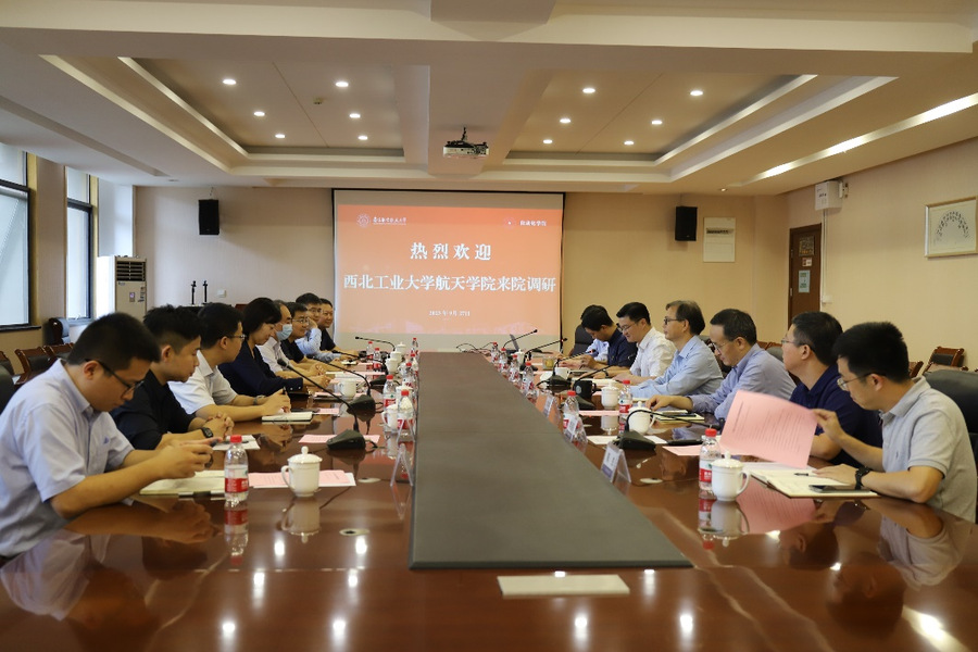 9月27日,西北工业大学航天学院执行院长岳晓奎、党委书记黄越、副院长宁昕一行八人来院调研交流。betway西汉姆联党委书记李文雷、院长陈谋带领学院领导班子成员参加交流会。会议由betway西汉姆联党委副书记丁琛主持。