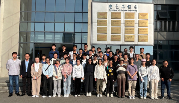 任小永、陈鹏伟、魏佳丹与同学们在电气工程系合影