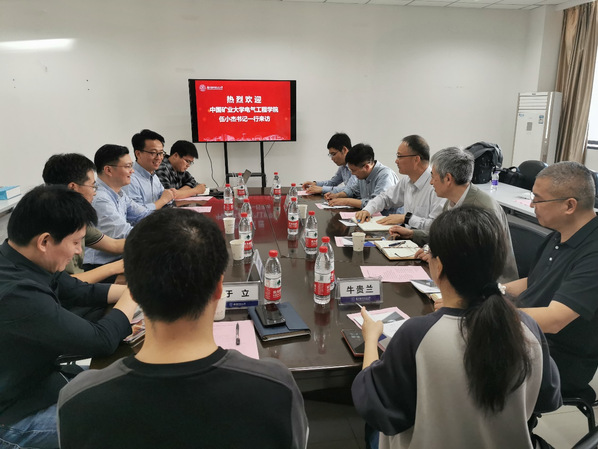 伍小杰介绍了此行调研的主题,主要包括电气工程专业培养方案、本科生推免政策、专业建设、教材课程建设等工作调研和人才培养经验交流。矿大电气工程学院副院长徐瑞东、电气工程专业负责人邓先明、电力电子与电机系主任于东升、教学办主任牛贵兰、严家明等老师参加交流,我院电气工程系副主任陈鹏伟、于立、电工技术中心主任方天治、教学办老师参加座谈。