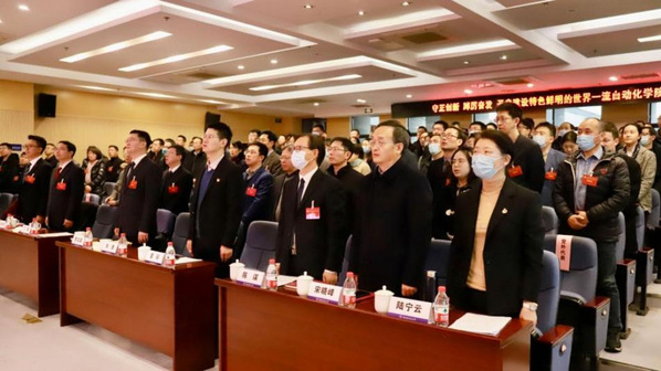 大会在庄严的国歌声中拉开帷幕。