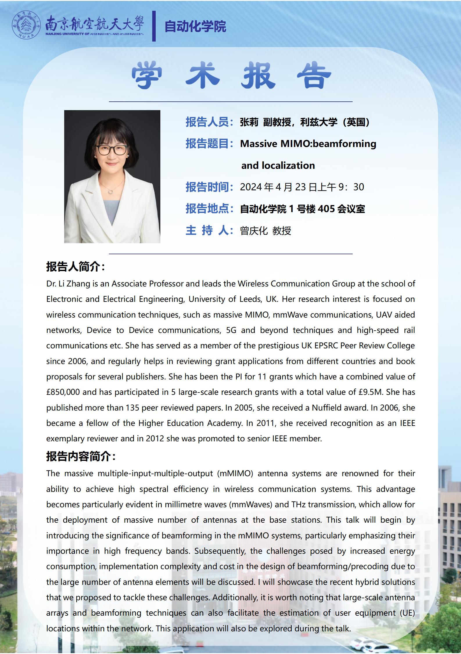 【学术报告】张莉:Massive MIMO: beamforming and localization