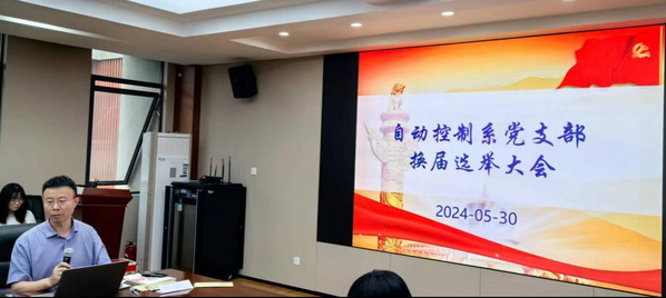 2024年5月30日,自动控制系党支部在betway西汉姆联1号楼403会议室召开了全体党员大会,进行党支部委员换届选举。会议由自动控制系支部书记、主任曾庆化同志主持。