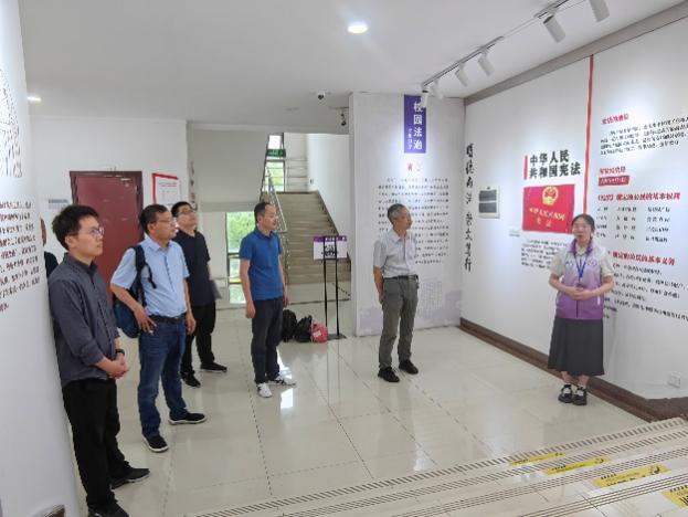 随后,全体党员前往人文与社会科学学院参观校园法治文化馆。在专业讲解员的引导下,党员们参观了校园法治文化馆展廊和模拟法庭,深入了解了我国法治建设的发展历程、重要成就以及法律法规的基本知识。
