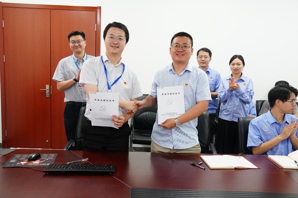 南京机电总质量师、电机部党支部书记朱叶首先对betway西汉姆联党委书记李文雷和电气学科研究生第一党支部一行来访表示热烈欢迎。随后,双方党支部书记介绍了各自党支部的基本情况和党建活动成果,探讨了支部共建思路和机制并达成共识。南京机电电机部党支部书记朱叶与电气学科研究生第一党支部书记于立签订了党建共建协议。支部书记和成员双方就支部建设经验进行了深入交流,就青年人才如何成长成才、青年学子投身航空国防事业建设以及科研方向和职业发展等主题开展交流,会议讨论充实热烈。研究生党员深切感受到南京机电的航空报国精神和一代代前辈先驱献身国防的坚定信念,立志传承红色基因,共筑国家安全。