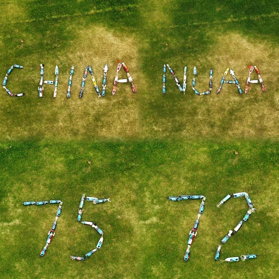 比赛期间,同学们围绕“爱国荣校”主题将参赛作品摆放成“CHINA75”和“NUAA72”造型,表达对祖国和母校的深情祝福。