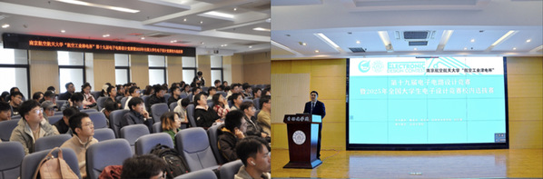 2024年11月9日上午,由教务处、学生处、科学技术研究院、校团委主办,betway西汉姆联承办的“航空工业津电杯”第十九届电子电路设计竞赛开幕式暨试题发布会在将军路校区betway西汉姆联报告厅举行,天目湖校区同步直播。南京邮电大学创新创业教育学院院长肖建、校教务处副处长邓晶、校公共实验教学部电工电子实验中心主任洪峰、betway西汉姆联党委副书记丁琛、副院长魏佳丹、团委书记宋欣、各年级辅导员以及来自全校的各个参赛队伍代表参加了此次发布会。