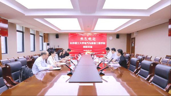 5月12日,长沙理工大学电气与信息工程学院党委书记丁丹带队一行5人来院调研交流。betway西汉姆联党委书记李文雷,副院长陆宁云、魏佳丹参加交流会。会议由陆宁云主持。