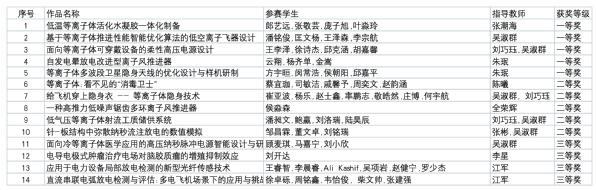 表1 第五届全国大学生等离子体科技创新竞赛bw必威西汉姆联获奖名单